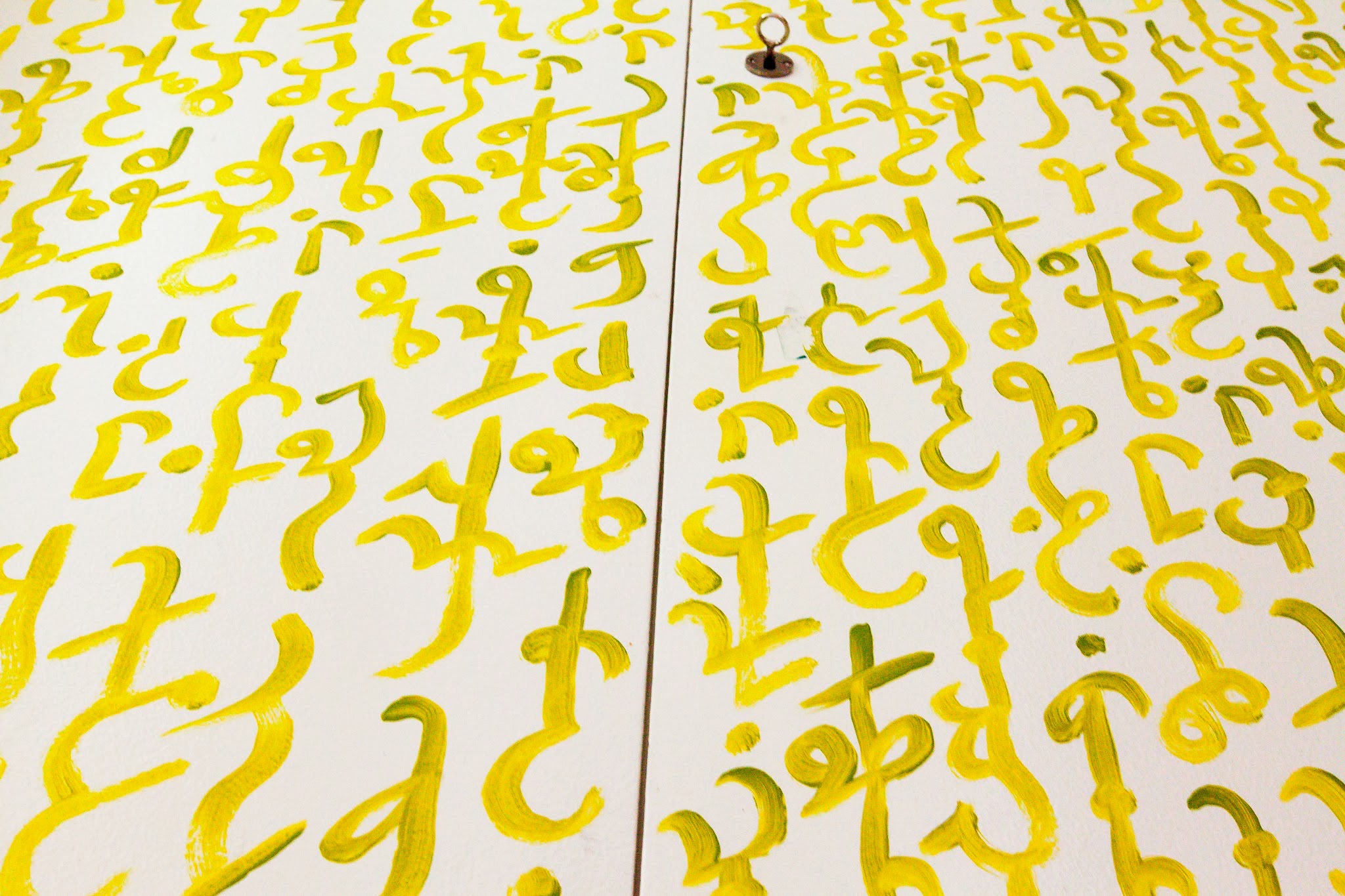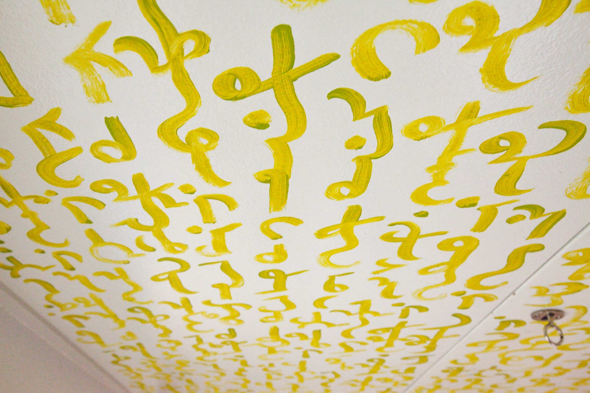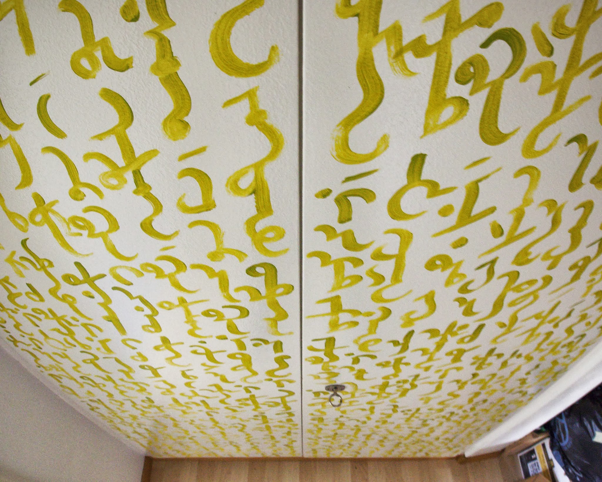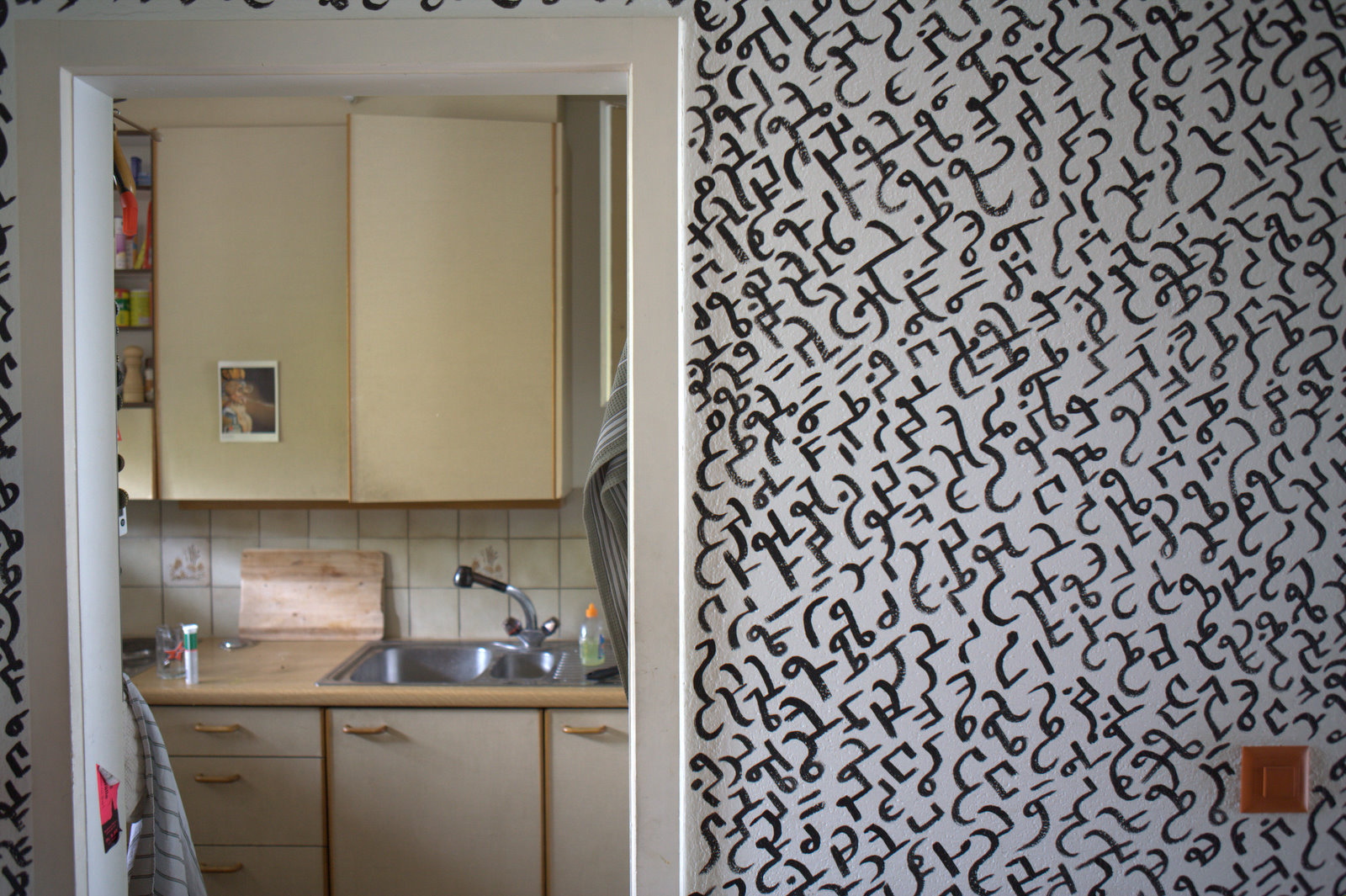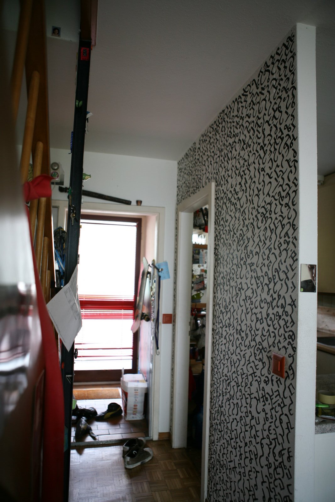 Wall in SteveÕs former flat Ð thanks go to Linda for the pics. This is in (mature) simple style. It is the beginning of Jean PaulÕs ÒRede des toten Christus vom WeltgebŠude herab, dass kein Gott seiÓ (ÔThe Dead ChristÕs Speech from Atop the Universe that There Is No GodÕ).
